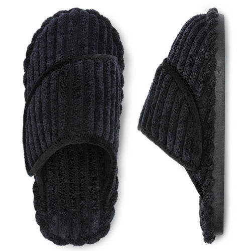 Leisfit Women Memory Foam House Slippers Corduroy Black